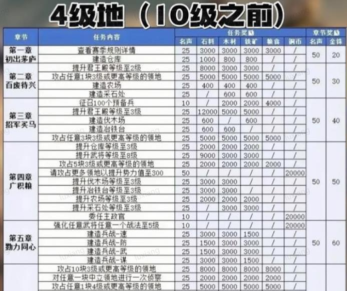 关键原因:打满 5 块四级地,能解锁第四章攻占五块三级地的主线剧情任务奖励,把点将台升至二级,为后续三将碰瓷开五做好准备。