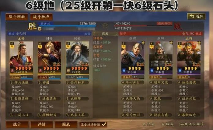 开第一块六级石头地时,先让贾诩组三将碰瓷一波,尽量低损拿下。